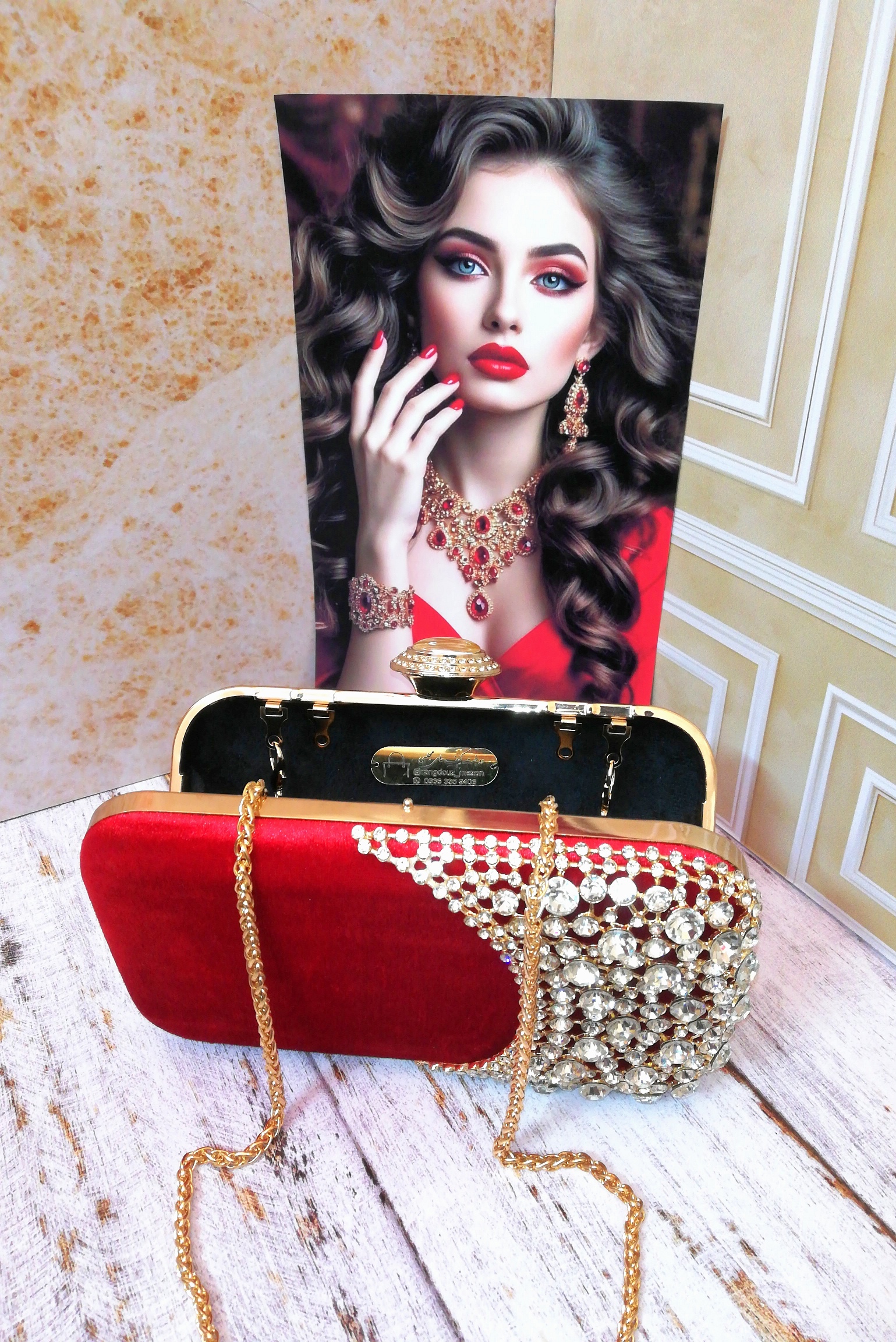 کیف زنانه مجلسی دست‌دوز جنس پارچه مخمل