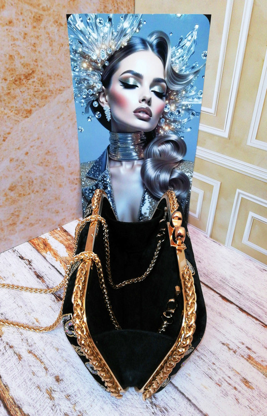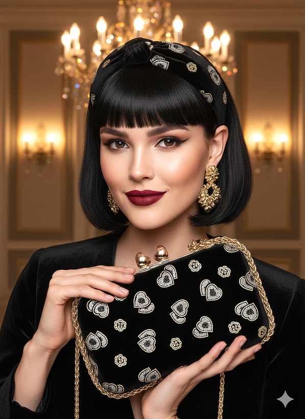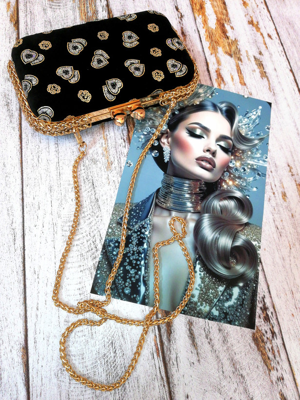 کیف زنانه مجلسی دست‌دوز جنس پارچه مخمل طرح دار