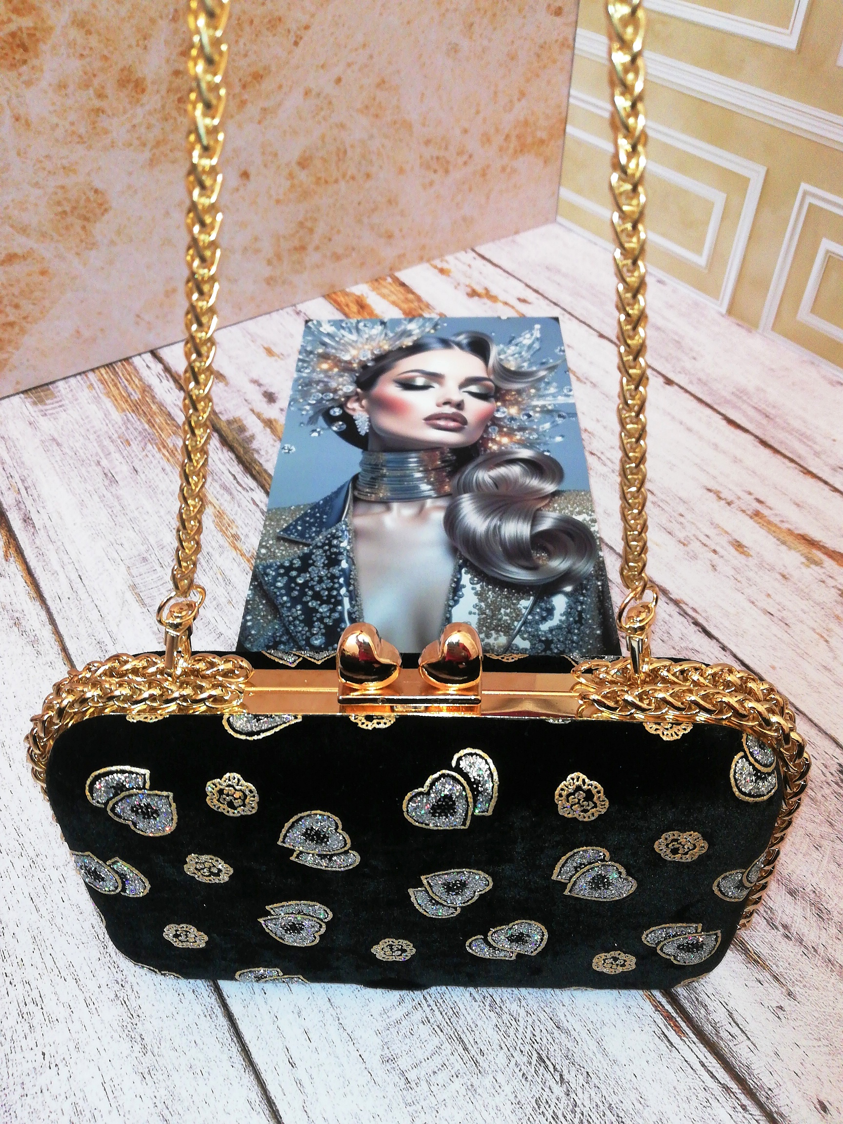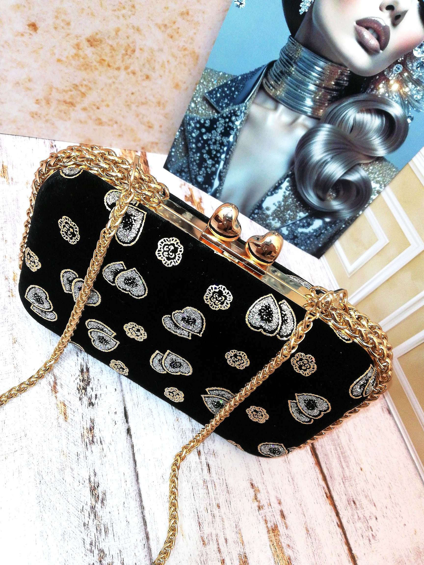 کیف زنانه مجلسی دست‌دوز جنس پارچه مخمل طرح دار