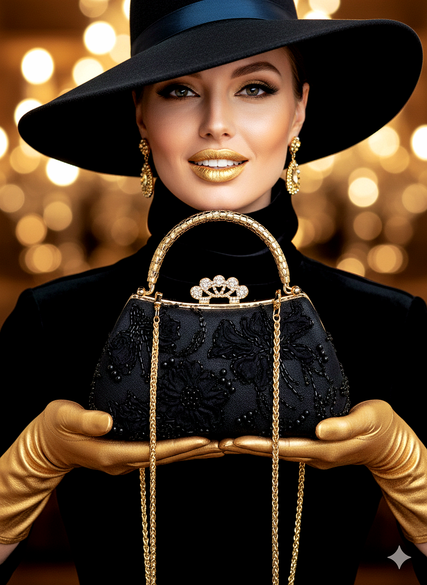کیف مجلسی زنانه و دخترانه، فوق لاکچری، دستدوز، شخصی دوز، جنس پارچه روی کیف تور گل برجسته کارشده با مروارید و منجوق، آستر داخل کیف اشبالت مشکی، طرح قفل کیف تاج نگیندار، دارای دو دسته نما توری شیک که قابل جدا شدن هستن، به همراه زنجیر بلند، رنگ قاب کیف طلایی، متریال و یراق آلات وارداتی و رنگ ثابت، استحکام و کیفیت بالا، طراحی خاص و بی نظیر، جادار و کاربردی