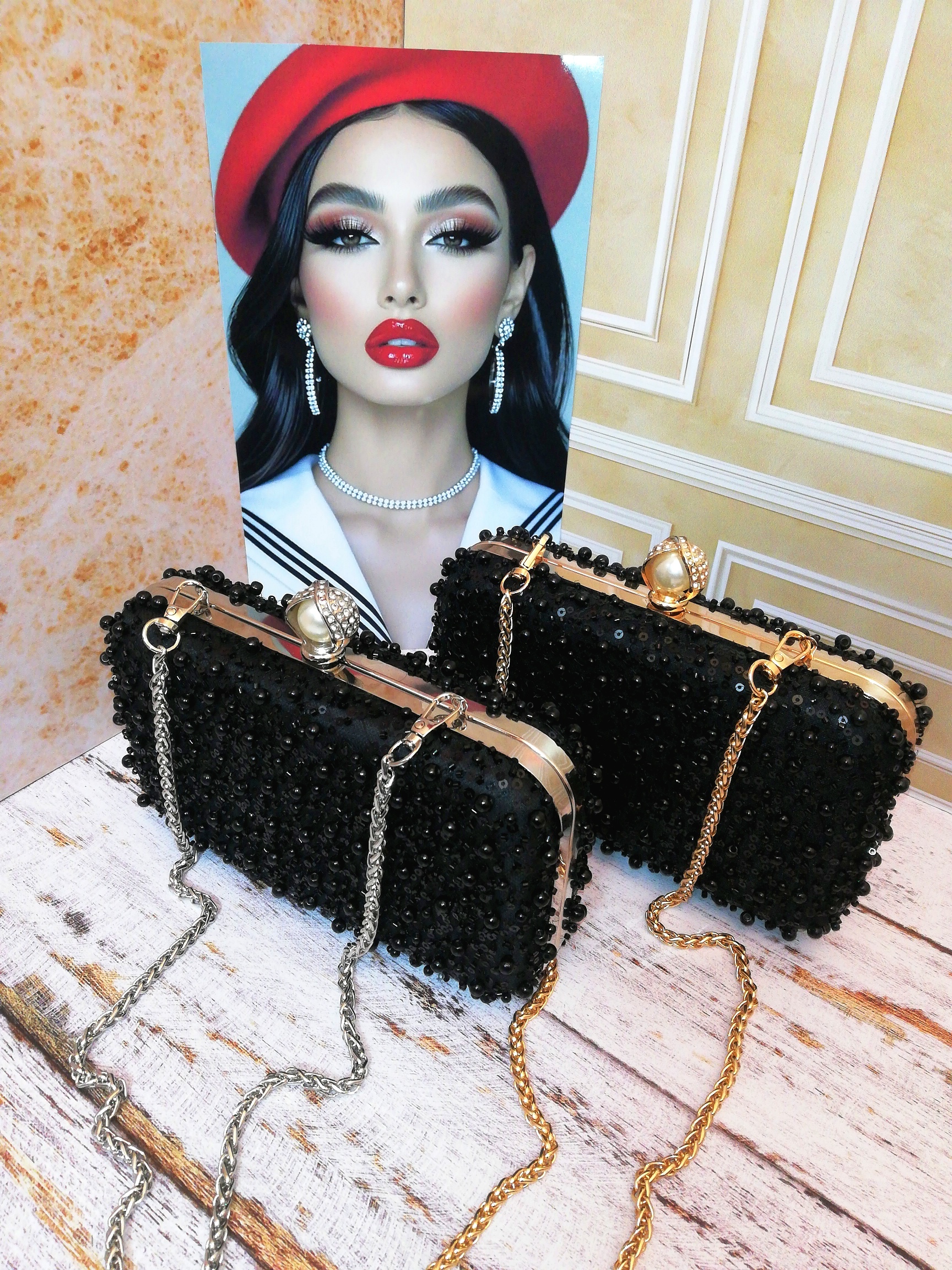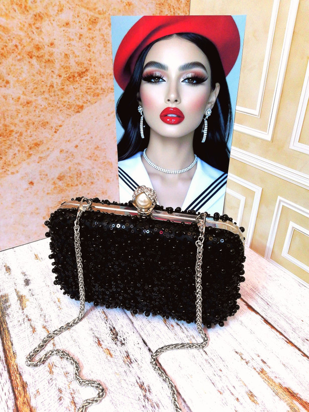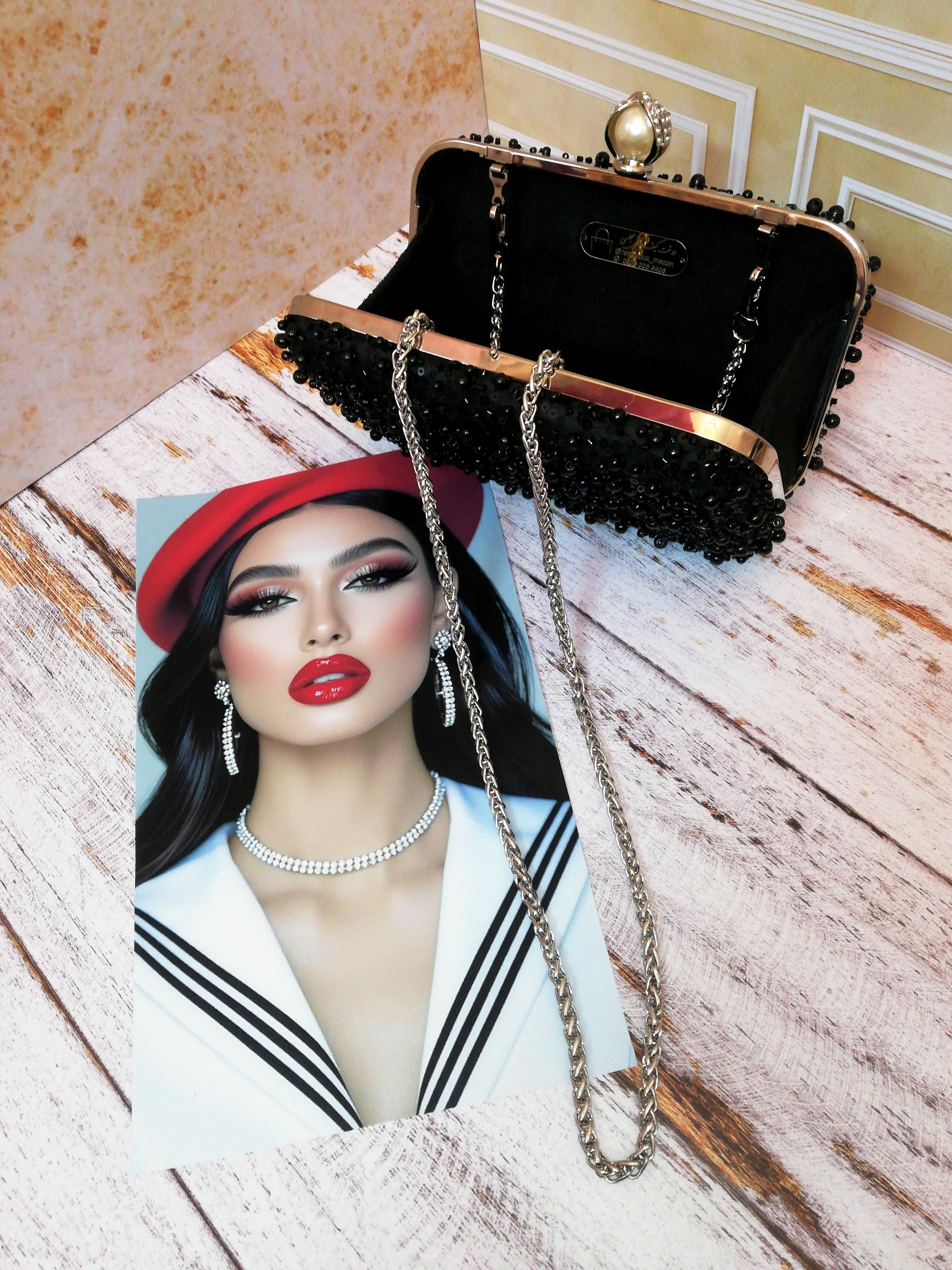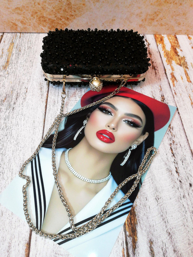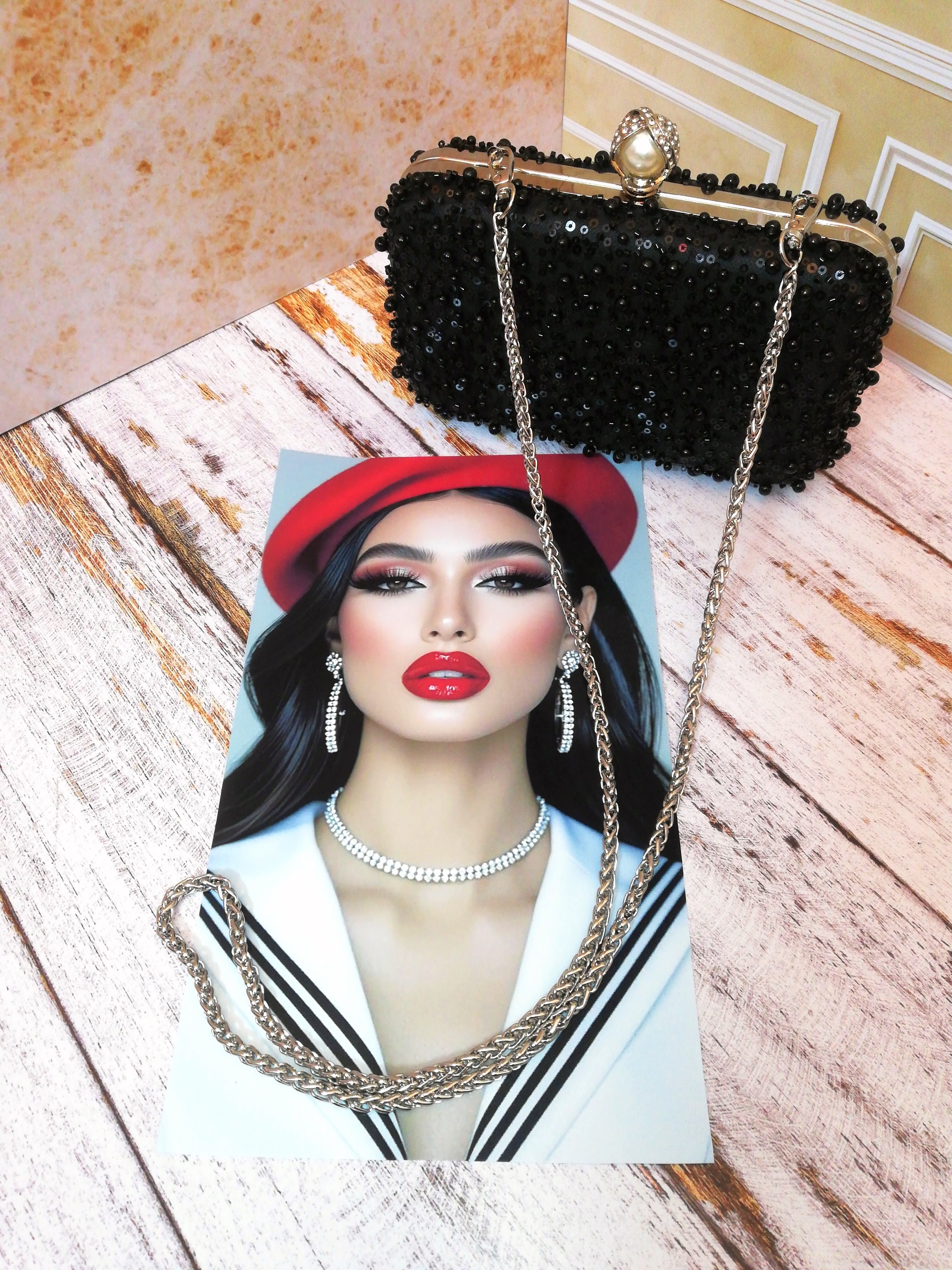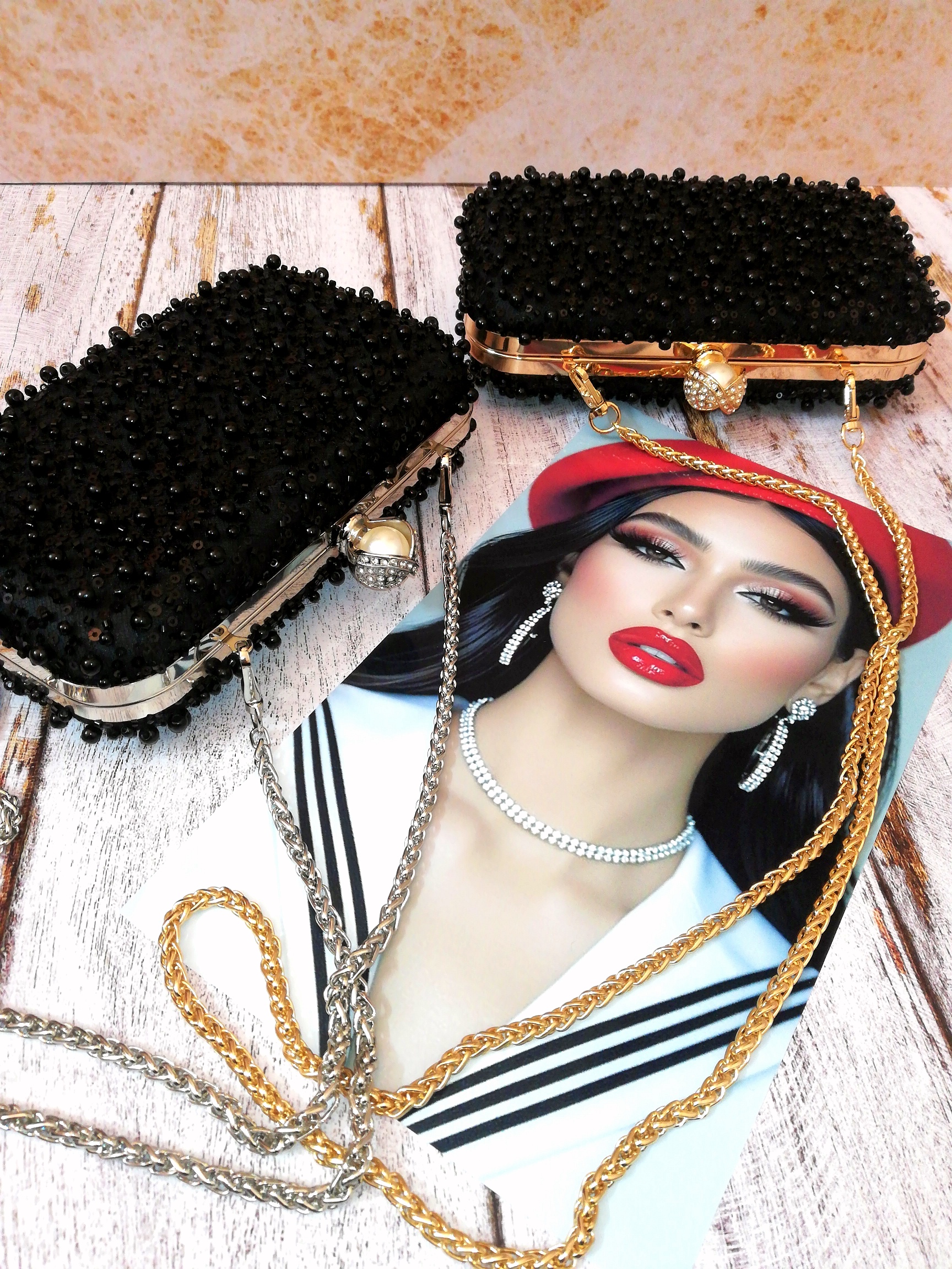 کیف زنانه مجلسی دست‌دوز و دست ساز جنس پارچه تور کارشده با مروارید و منجوق و پولک