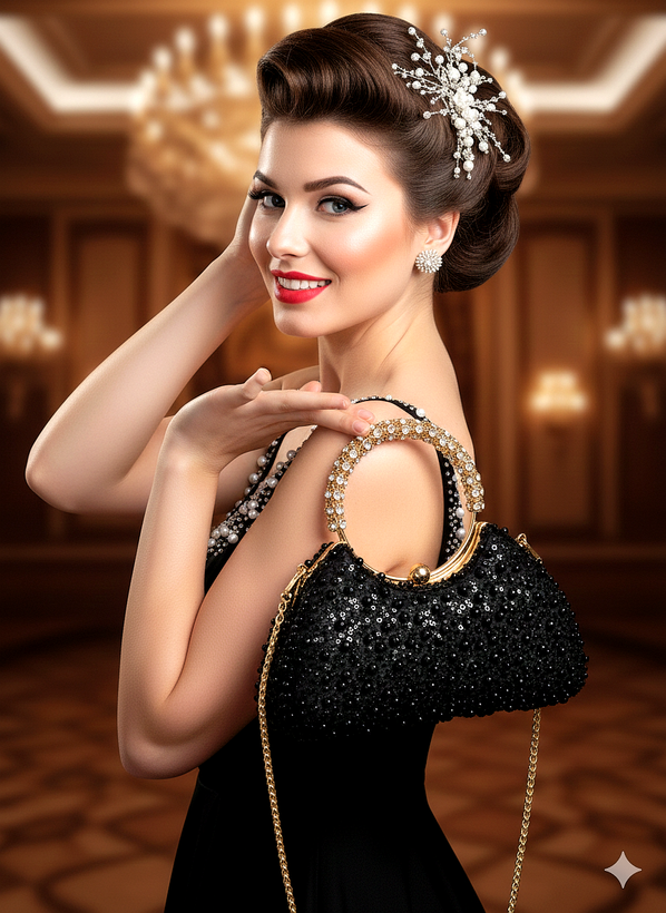 کیف زنانه و دخترانه، دستدوز، شخصی دوز، مجلسی (کلاچ)، جنس پارچه روی کیف تور جسمیکو مشکی(تور فول کاور شده با مروارید و منجوق و پولک، کاملا آستر کشی شده)، آستر داخل کیف اشبالت مشکی، رنگ قاب کیف طلایی، طرح قفل کیف دو گوی، دارای زنجیر بلند دوشی با کیفیت، متریال و یراق آلات وارداتی و رنگ ثابت، استحکام و کیفیت بالا، مدل و طراحی خاص و منحصر به فرد، کاملا جادار و کاربردی